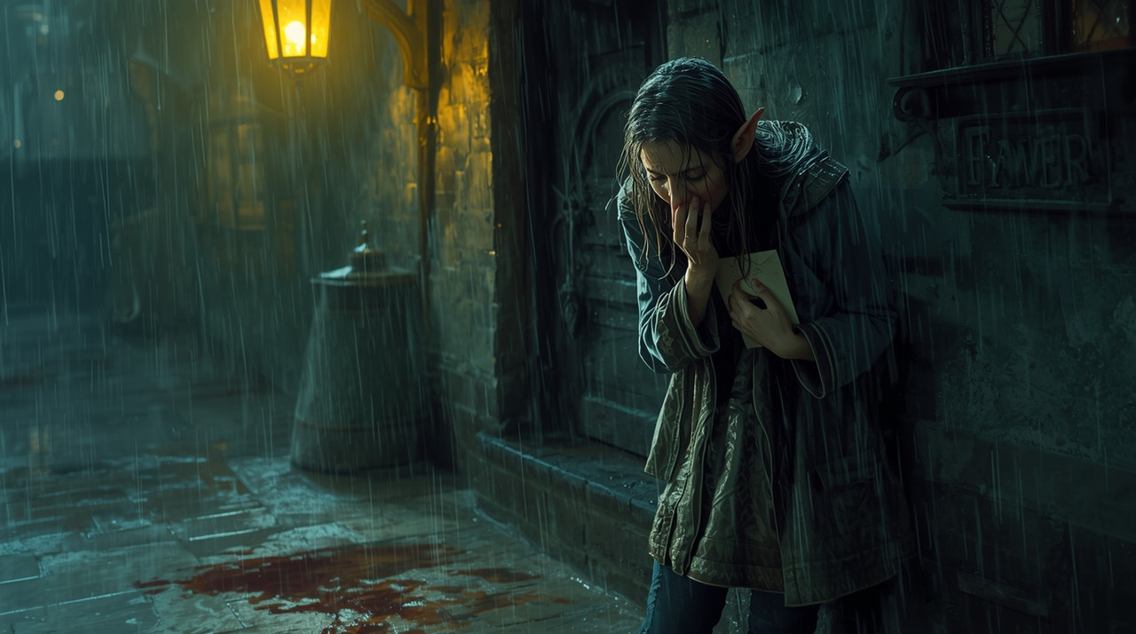 Шпионка приложила письмо к губам и крепко поцеловала. Потом поднесла его к груди, прижала и стояла так некоторое время. Следом конверт был аккуратно сложен и помещен во внутренний карман. Она вышла на улицу; ее не волновал ни дождь, ни ветер, ее ничто не волновало, кроме одной мысли: «Как я буду жить без тебя?» Она села на коленки около стены трактира, и ее стошнило. Слезы снова начали идти градом. Тошнота, слезы, тошнота, слезы... Эльфийка встала, прислонила две руки к месту, где лежало письмо от ее дорогой подруги, и тихо прошептала: